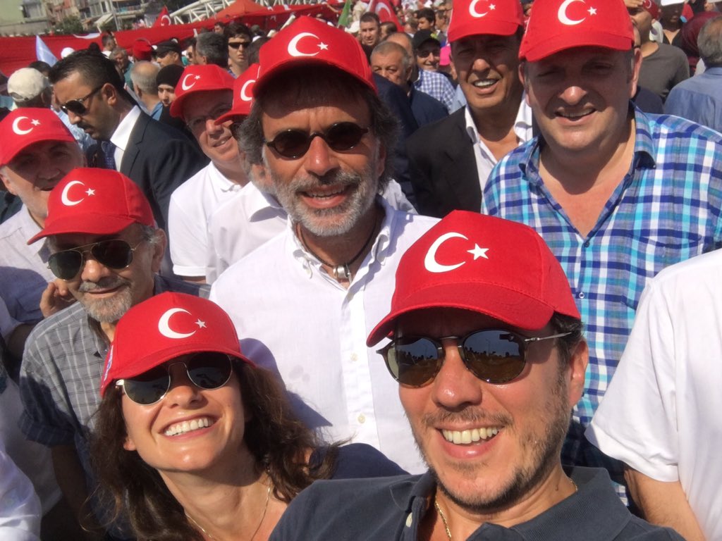 Türk Musevileri de Hahambaşı Rav İsak Haleva, Cemaat Başkanı İshak İbrahimzadeh ve Şalom Gazetesi yazarları eşliğinde Demokrasi ve Şehitler Mitingi’ndeydi.