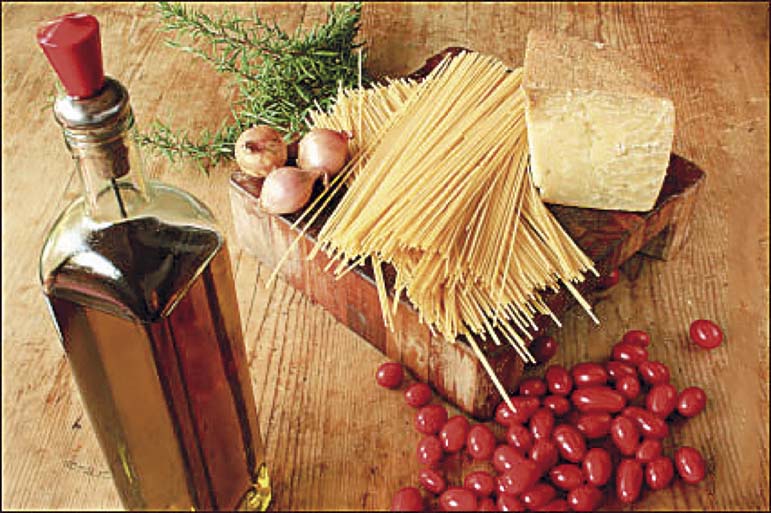 İtalyan mutfağının en çok bilinen ve sevilen yiyeceği ise çeşit çeşit makarna yemekleridir. Makarna kuru ve taze olmak üzere iki şekilde üretilir. Yumurtasız yapılan kuru makarna gerekli şartlar sağlandığında iki yıla kadar dayanabilirken taze makarna buzdolabında en fazla birkaç gün dayanabilir. Makarna genellikle haşlanarak pişirilir. İtalyan makarnasının geleneksel olarak al dente (İtalyanca ‘ısırmak için sert’ anlamına gelip, çok yumuşak olmaması gerektiğini ifade eder) pişirilir.