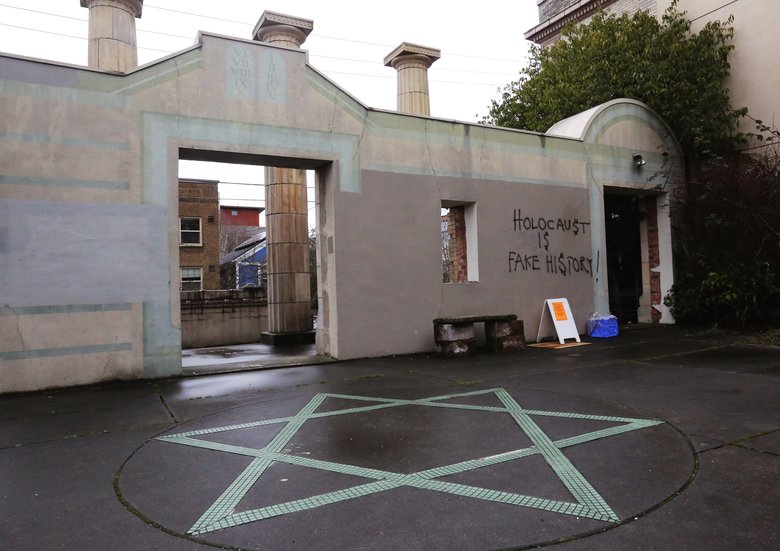 ABD’nin Seattle şehrinde bulunan Temple de Hirsch Sinai Sinagoguna cuma günü gelen Yahudiler duvara sprey boya ile yazılmış “Holokost hikayedir” ibaresine şahit oldular.