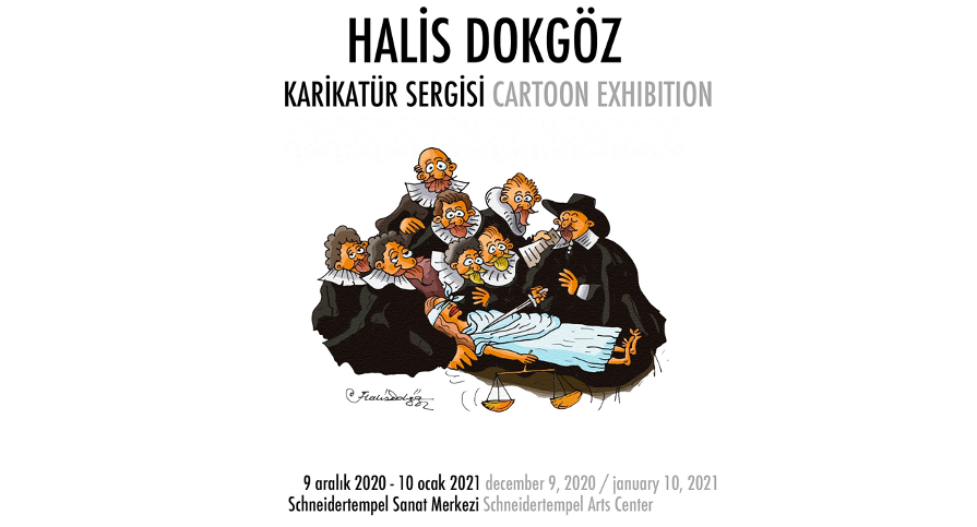 Halis Dokgöz's cartoon exhibition in Scneidertempel Art Gallery will stay open until January 10th, 2021.