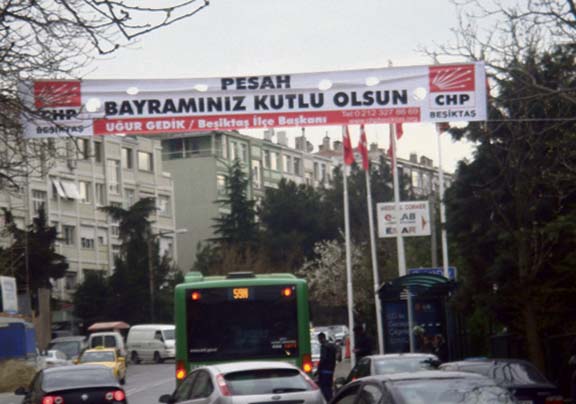 CHP Beşiktaş İlçe Başkanı Uğur Gedik, Musevi vatandaşların yoğunlukta yaşadığı semtlerde astırdığı pankartlarla Pesah Bayramı’nı kutladı.