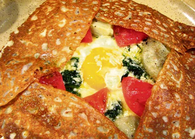 Un, tuz ve suyu iyice karıştırın, sonda yumurtayı katıp tekrar karıştırın ve malzemeyi 1 saat dinlendirin. Galeti krep tarifindeki gibi hazırlayın. Tavanın üstündeyken içine, önceden sotelediğiniz ıspanağı, enginar parçalarını, domates dilimlerini koyup bolca peynir rendeleyin, ortasına bir yumurta kırın ve kenarlarından katlayın. Bir kaç dakika içinde galetiniz hazır.