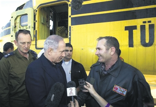 İsrail Başbakanı Binyamin Netanyahu’nun ofisinden yapılan açıklamada, Başbakan Tayyip Erdoğan’ın talimatı ile gönderilen yardımdan duyulan memnuniyet dile getirildi. Türkiye’nin gönderdiği yaklaşık 6 ton su kapasiteli CL-215 tipi amfibi uçakları Ramat David askeri üssünde ziyaret eden Binyamin Netanyahu, Türk itfaiye erlerinin yanına giderek bizzat teşekkür etti.