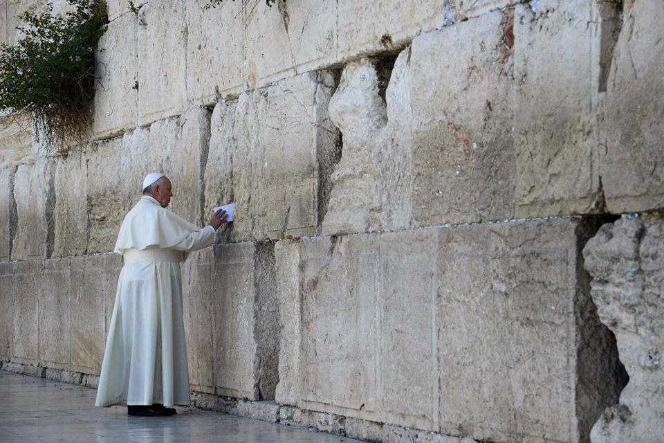 Papa Francis Ağlama Duvarı’nda ettiği duada Evrenin Yaratıcısı’ndan barış istedi ve her ziyaretçinin yaptığı gibi duvarın taşlarının arasına bir dilek yazısı bıraktı.