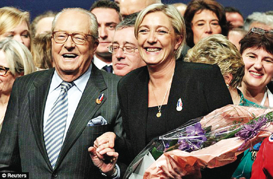Dört yıl önce çekilmiş bu fotoğraf artık sararmaya başlamıştır. Baba-kız arasında hedefler değişmekte, politik kırılma ile ailevi çekişme içiçe geçmektedir. Babanın aşırı söylemleri mi yoksa kızının hırsı mı kazanacaktır? Jean-Marie parti içinde jüri karşısına çıkartılır, yaptırım olarak parti onursal başkanlığı askıya alınır. “Böyle bir şeyi asla beklemezdim. Yaratılan bu kriz politiktir, 40 yıllık partimin çizgisi değiştirilmek istenmektedir. Büyük bir acı bu benim için. İsmimi taşıdığı için utanıyorum ama acıma rağmen kızımı seviyorum.”
