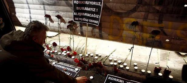Ellerinde "Korkmuyoruz, buradayız, alışmayacağız" yazılı dövizler taşıyan Beyoğlu esnafı patlama yerine karanfil bıraktı.