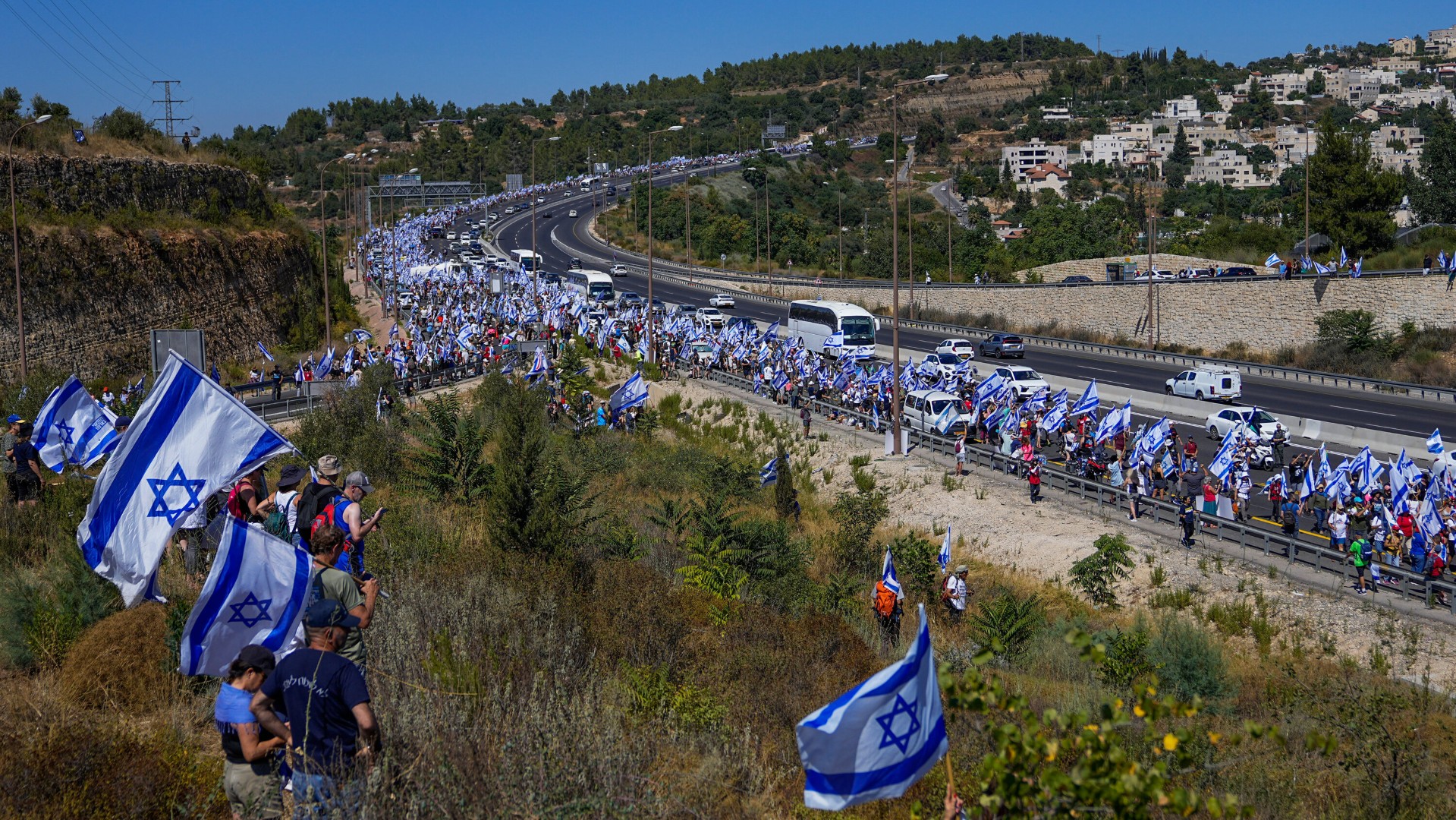 İsrail´de sayıca on bin kişiyi aşan kalabalık bir insan topluluğu 37 dereceyi bulan sıcağa rağmen, hükümetin hukuk sistemini değiştirme kararlarını protesto etmek için Tel Aviv´den Kudüs´e, Knesset binasına doğru, büyük bir çoşkuyla 4 gün boyunca demokrasi çağrısı ile yürüdü.