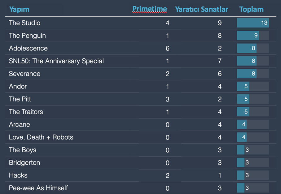 77. Emmy Ödülleri pazar gecesi televizyondaki en iyileri kutladı. Apple TV+’ta yayınlanan ‘The Studio’, bir komedi dizisi için tek bir yılda en çok ödül kazanma rekorunu kırdı. Dizinin yaratıcıları Seth Rogen ve Evan Goldberg yılın En İyi Komedi dizisi, En İyi Yazar ve En İyi Yönetmen Ödülünü birlikte alırken, Seth Rogen ayrıca En iyi Erkek Komedi Oyuncusu Ödülünü alarak gecenin yıldızı oldu. The Studio, iflasın eşiğindeki bir film stüdyosunun başına geçen idealist bir yöneticinin, sanatsal vizyon ile ticari baskılar arasında verdiği mücadeleyi anlatıyor. 43 yaşındaki Rogen, komedi yazarlığının yanında Barbra Streisand, Charlize Theron, Keanu Reeves gibi dev isimlerle birlikte çoğunluğu komedi filmlerde aldığı rollerle tanınıyor. 12 yaşında komedi şovlar yazarak ve stand-up gösterileri yaparak kariyerine başlayan Rogen mali durumu zayıflayan ailesine bakmak için liseyi terk etmişti. Mizah anlayışını büyük ölçüde Yahudi unsurlarıyla birleştiren Rogen, lise yıllarından beri arkadaşı Evan Goldberg ile konusu ergenlik, dostluk, sıradanlık ve kenara atılmanın oluşturduğu çokça doğaçlama içeren komediler üretiyor.