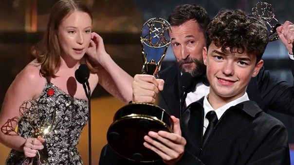 ‘Severance’ dizisinin yıldızları Britt Lower ve Tramell Tillman da drama kategorisinde sırasıyla En İyi Kadın ve En İyi Yardımcı Erkek ödülleriyle eve döndü. ‘Hacks’ dizisinin yıldızları Jean Smart ve Hannah Einbinder, dizinin dördüncü sezonuyla komedi dalında En İyi Kadın ve En İyi Yardımcı Kadın ödüllerini aldı.
