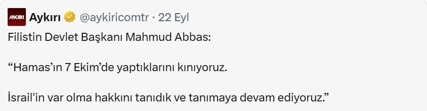 Dolayısıyla Filistin'in koşulsuz tanınması Filistin halkının hak etmediği bir ödüldür.
