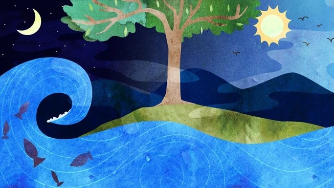 El Kriyador kriyo todo el mundo, los syelos i la tyerra, i todo lo ke ay en eyos en 6 diyas. En el diya sejeno, kriyo al ombre Adam aRishon i a su mujer Hava i los metyo dyentro la guerta ke kriyo en el oryente, Ganeden, para ke la lavoraran i la guadraran de no deshar entrar adyentro a las bestyas i animales. El Dyo permetyo a Adam i su mujer de komer de todos los arvoles de fruto ke aviya en Ganeden, afuera del arvol nombrado “Ets Adaat”, arvol del saver ke komyendo de su fruto aze pujar los dezeos i visyos del kuerpo. Les defendyo de komer de el. Hava, la mujer de Adam, se sombayo detras de la vista ermoza de este arvol, i komyo de su fruto i izo komer de el i a su marido. El Dyo se aravyo muncho kon eyos porke pasaron su komando i los maldisho, i los desterro de Ganeden. El Kriyador les izo azer a Adam i a su mujer unas kamizas de kuero para ke se taparan sus kuerpos ke estavan desnudos. A Adam le paryo su mujer dos ijos, Kayin i Evel, i kon kada uno de eyos paryo una ija. La ke nasyo kon Kayin se nombrava Kalamana i fue mujer de Kayin, i la ke nasyo kon Evel se nombrava Balvere i fue su mujer. Kayin se okupava del lavoro de la tyerra, arar i sembrar i Evel se okupava de pasear las ovejas. Kayin i Evel trusheron prezentes a el Dyo. Kayin trusho de los frutos de la tyerra de lo ke le vino a la mano i Evel trusho de los primeros nasidos i los mas ermozos de sus ovejas. El Dyo amostro su kontentes de Evel i de su prezente, i de Kayin i de su prezente no estuvo kontente. Kayin se selo muncho sovre esto i le guadro mal kerensya a su ermano.