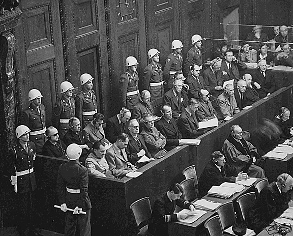El 18 de Oktubre de 1945, empeso la sesyon inogural de los prosesos de Nuremberg (tambyen konosidos komo el Tribunal Militar Internasyonal) kon el eskopo de yevar delantre la djustisya a los kriminales de gerra Nazis. Fueron una seriya de 13 djuzgos en Nuremberg, Alemanya. Los enterasados fueron akuzados por kulpas kontra la paz i kulpas kontra la umanidad.