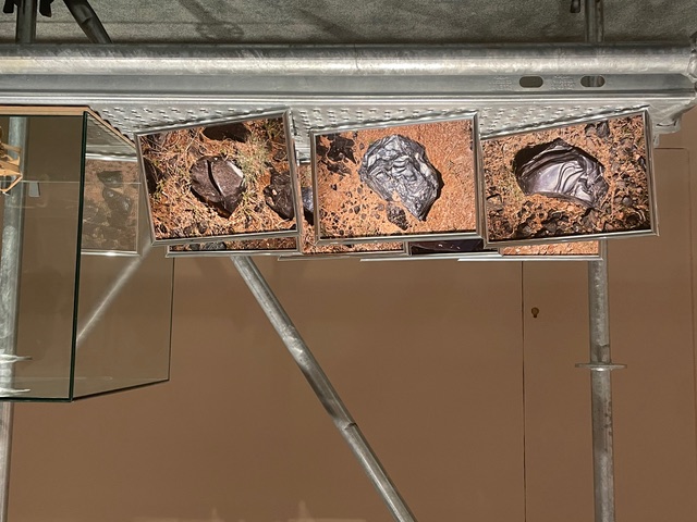 Sergi mekânı, ziyaretçiyi sanki bir peyzaj seyretmeye davet eden bir düzenle tasarlanmış: bir yandan durgunluk, diğer yandan yoğunluk duygusunu taşıyan bu yapı, Asa Jungnelius’ün farklı işleriyle zenginleştirilmiş. Sergide ayrıca, İsveçli fotoğrafçı Peo Olsson’un, Doğu Anadolu’nun obsidyen (cam kaya) yatakları üzerine yaptığı araştırmaları belgeleyen fotoğrafları da yer alıyor. Bunlar, izleyiciye zamanın dikey akışını tersine çevirmek gibi bir algı da sunuyor.