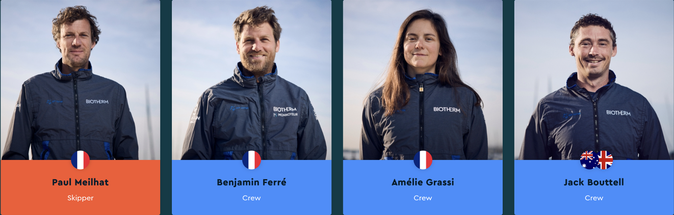 Her takım üyesi ayrıca değerli. Kısaca Amelie'nin bu takımdaki en eski üye olduğunu, onun, Paul Meillhat ve Benjamin Ferre'nin (Benjamin Vendee Globe'da - teknesiyle 26. olmuştu) ilk birincilikleri olduğunu belirtelim.