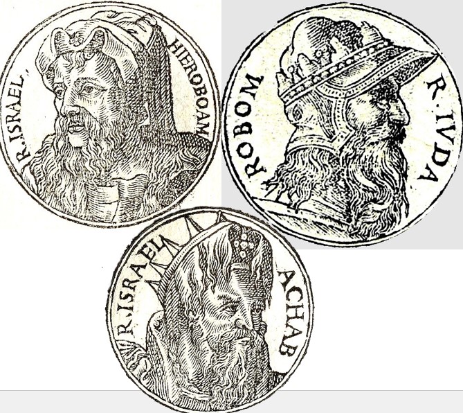 Soldan sağa krallar Jeroboam, Rehoboam ve Ahab