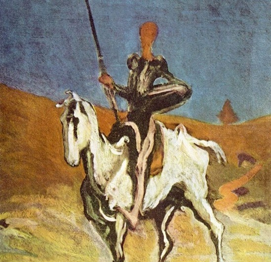 Don Quijote, edebiyatın doğuşuna tanıklık ediyordu. Ama sanki erkenden yasını da tutmaya hazırdı. Şövalyelere aslında sahip çıkıyordu. Yani, zenginliğin ve çıkarın baş tacı edilmediği, görünmenin ve göstermenin baş tacı edilmediği, röntgenciliğin ve egzibisyonizmin kutsanmadığı bir dünyayı savunmaya gelmişti. Ama öyle bir dünya yoktu. Onun için komikti Don Quijote.