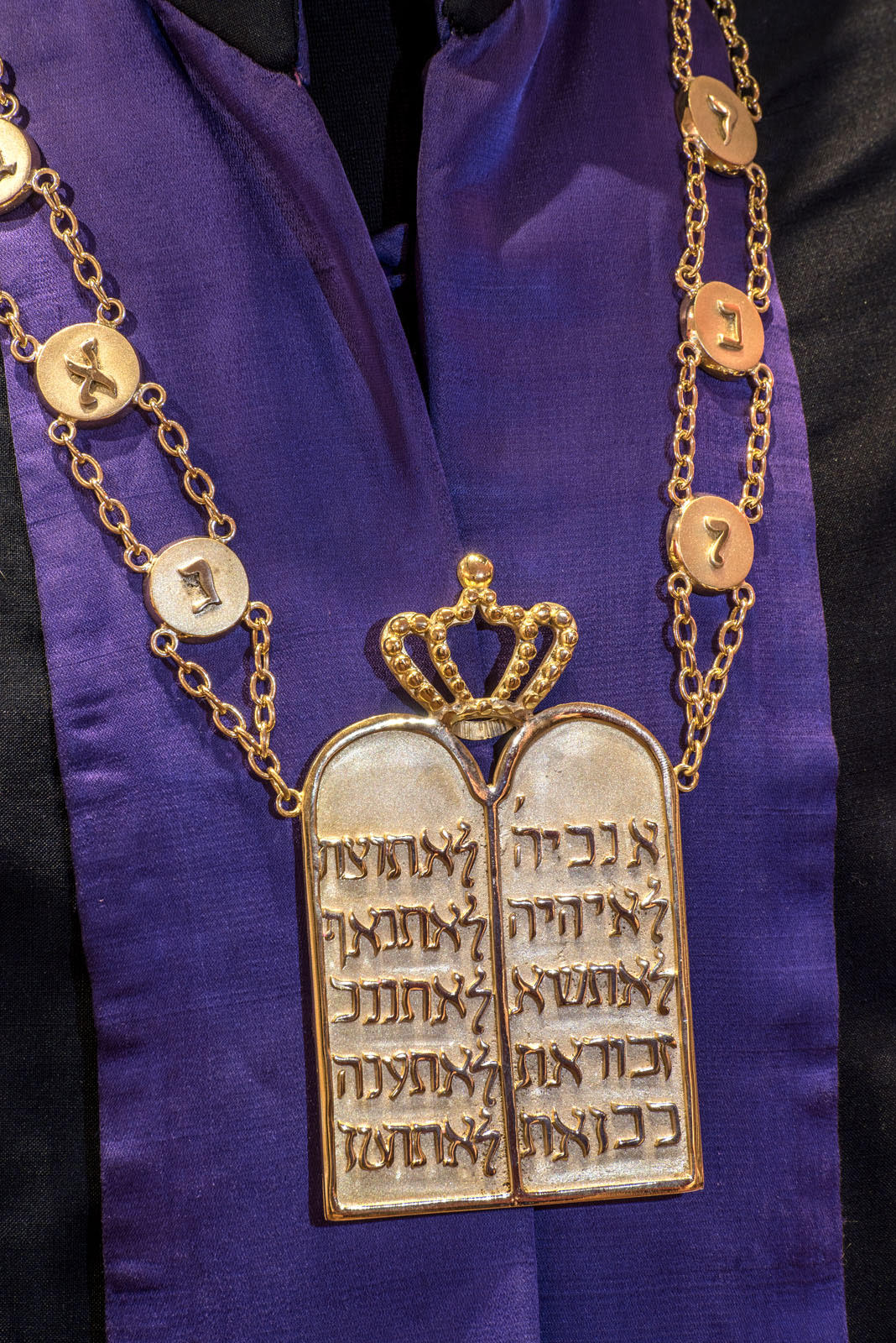 Görsellerde müzemizde bulunan ve hahambaşımızın güncel olarak kullandığı kolyenin replikasını ve Rafael Saban’ın bağışladığı kolyeyi kendisinin üzerinde görebilirsiniz.
