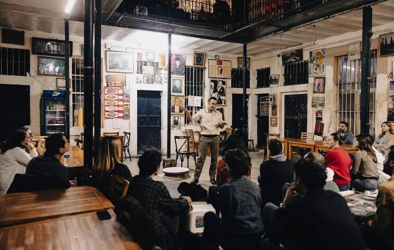 Lara Lakay’ın proje tasarımını Yağmur Dolkun ve Tülin Özen’le birlikte yaptığı uyarlamada ‘Çerkes Rıdvan’ın Dolabı’, İstanbul’un merkezinde, Haliç Metro istasyonuna yürüyerek birkaç dakikalık mesafedeki Tarihi Kuveloğlu Hanı’nda canlı müzik eşliğinde yeniden doğuyor; 17. yüzyıl başı İstanbul’unu gündelik yaşamı, eğlence kültürü, toplumsal dinamikleri hayata dönüyor. Hanın avluları, geçitleri, balkonları anlatının taşıyıcılarına dönüşüyor, Cem Zeynel Kılıç’ın canlı müzikle desteklenen meddah anlatısı, izleyiciyi yaşayan bir hatıra albümünün sayfaları arasında gezdiriyor.