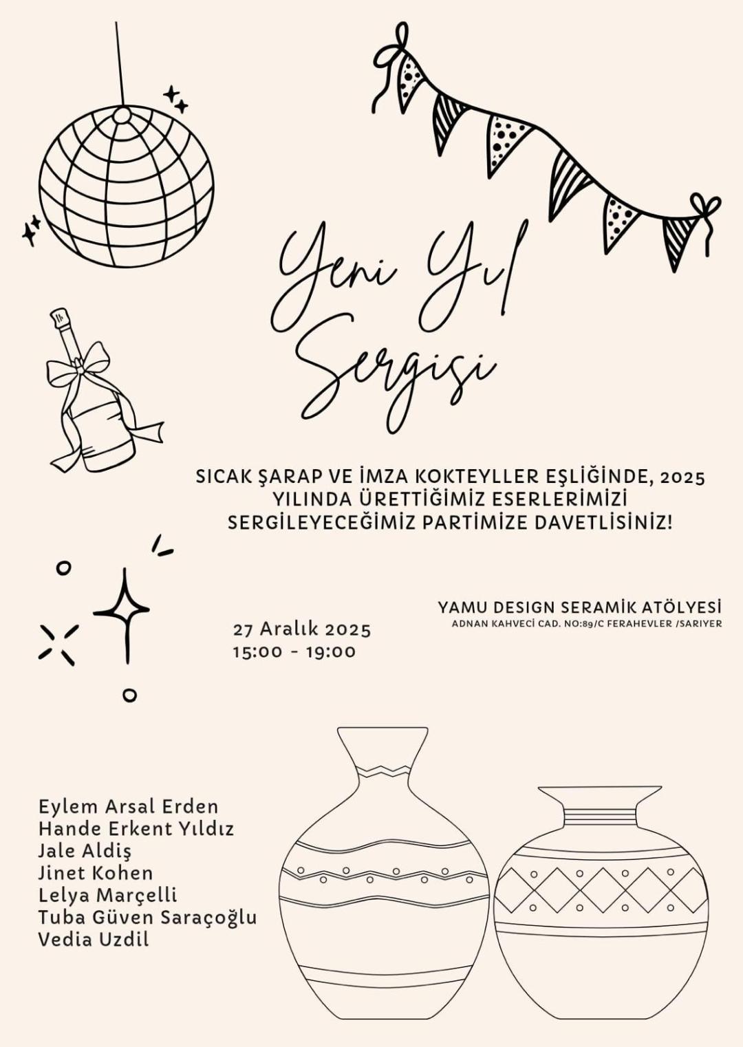 Yamu Design Seramik Atölyesi’nde gerçekleşecek sergi, yeni yılı sanatla karşılamak isteyen herkesin katılımına açık olacak.