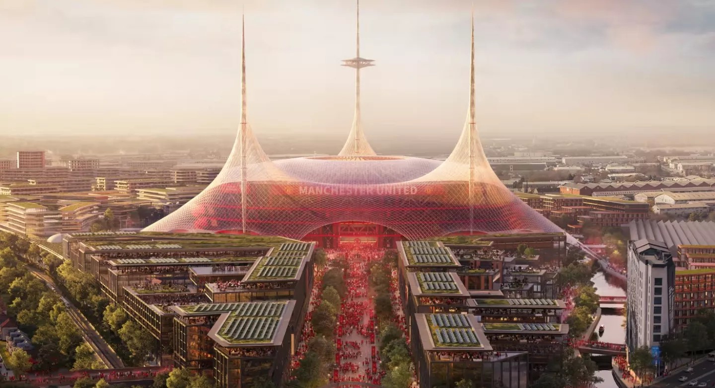 Manchester United yönetimi, modern futbolun gerekliliklerine cevap vermekte zorlanan Old Trafford yerine yeni bir stadyum projesi için harekete geçti. ‘Yeni Trafford’ adı verilen tesisin 100 bin seyirci kapasitesine sahip olması planlanıyor.