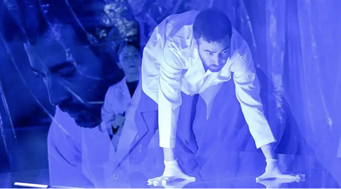 İkinci Bölüm, Decollage’ın 2. katında soğuk, beyaz, ıslak bir laboratuar. Deney tüpleri, mikroskoplar, önlükler, bir takım notlar, notlar ve notlar ve numaralandırılmış ismi olmayan primatlar üzerinde deney ve testler yapan, beyaz önlüklerini kuşanarak birer araştırmacıya dönüşmüş üç oyuncumuz.