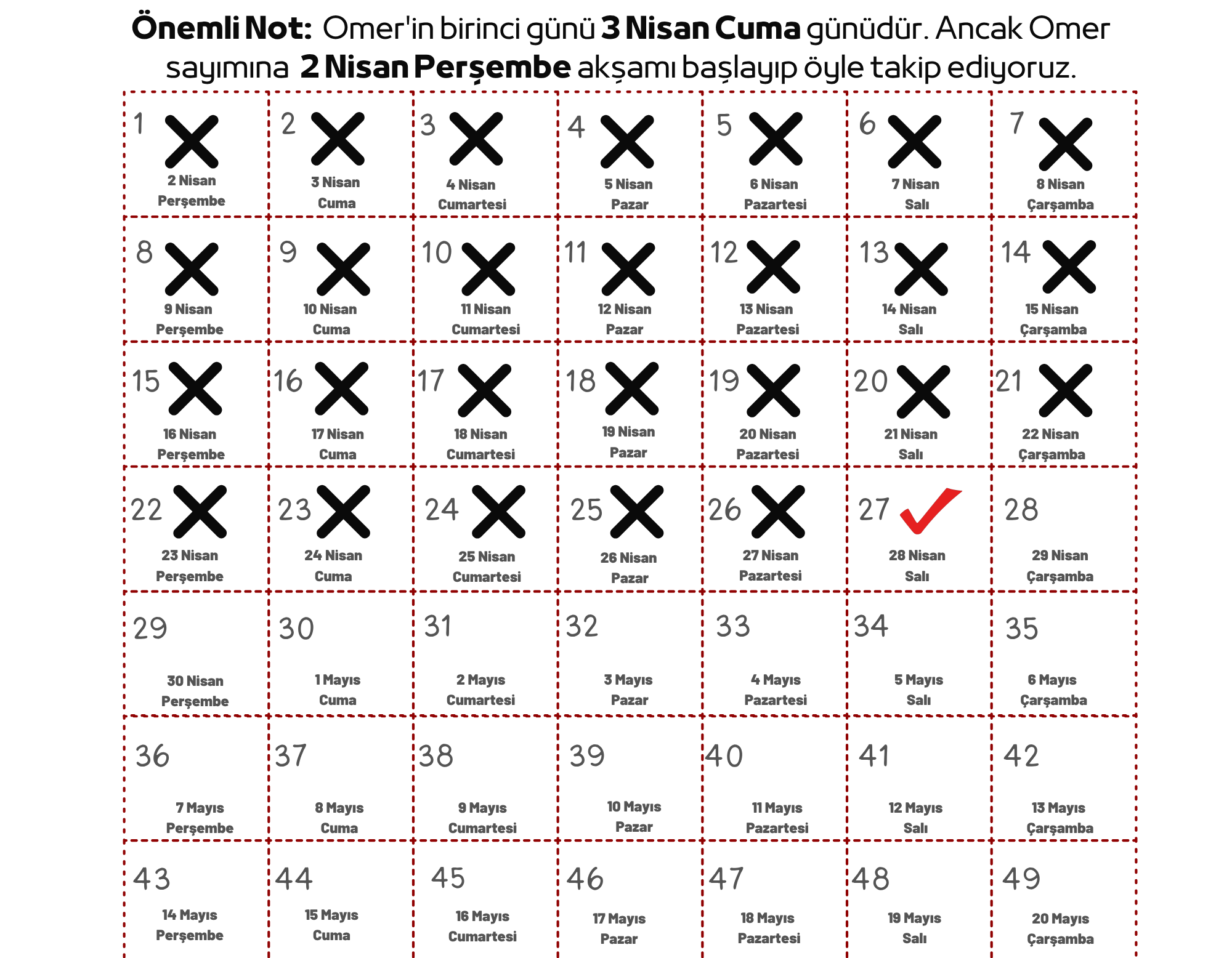 Pesah’ın ikinci gecesinden Şavuot’a kadar olan 49 günü tek tek saymak, sayarken Tanrısal özellikler üzerine yoğunlaşmak, ruhumuzu adım adım arındırıp rafine etmeye, bize Tanrı ile, etrafımızla ve kendimiz ile olan ilişkilerimizi geliştirip yükselme yolunu açabilir.