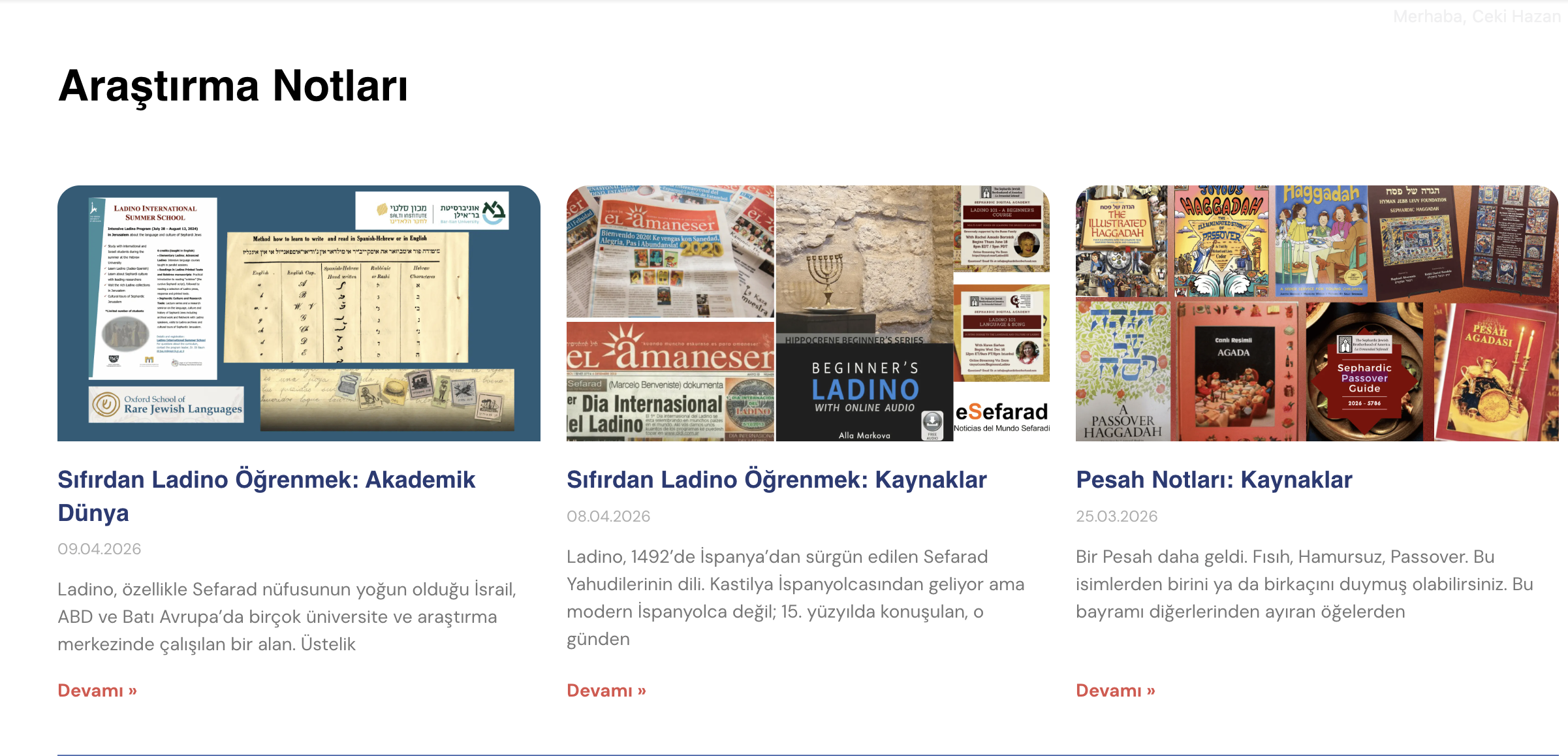 Araştırma Notları bu yüzden bir öğrenme günlüğü gibi. Kendi merak ettiğim konuları derinleştirip sonra başkalarıyla paylaştığım bir alan. Pesah bayramı ve Ladino konusunda başladım; yeni konularda da notları aktarmaya ve faydalandığım site ve belgeleri paylaşmaya devam edeceğim.