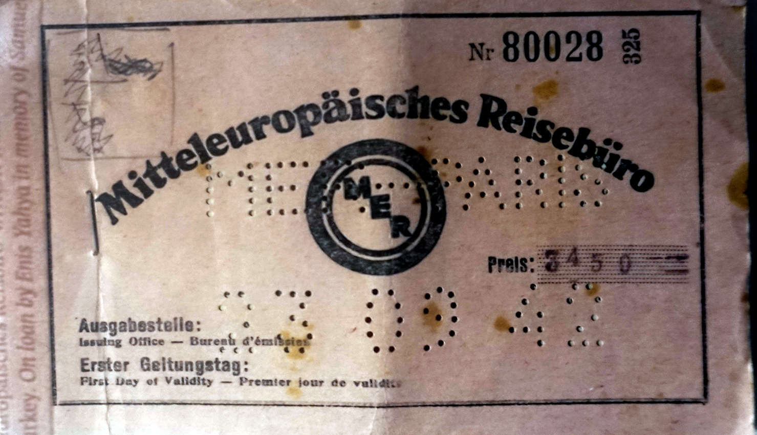 MER, 1917 yılında Berlin’de ‘Deutsches Reisebüro’ adıyla kurulmuş, daha sonra Orta Avrupa’daki seyahat organizasyonlarının merkezlerinden biri haline gelmişti. Kurum, özellikle demiryolu ulaşımının yaygın olduğu dönemde biletleme, rezervasyon ve uluslararası seyahat koordinasyonunda önemli rol oynamıştır. Belge Enis Yahya tarafından müzeye teslim edilmiştir.