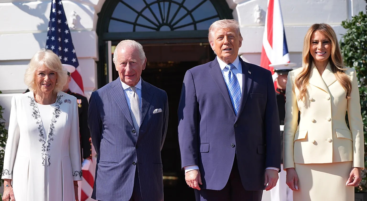 İngiltere Kralı III. Charles ve Kraliçe Camilla, ABD´nin 250. bağımsızlık yıldönümü dolayısıyla pazartesi günü Beyaz Saray´a gitti. Trump çifti, kraliyet çiftini karşılayarak fotoğraf çektirdi ve birlikte çay içti. Daha sonra Beyaz Saray bahçesindeki yeni arı kovanını gezdiler.