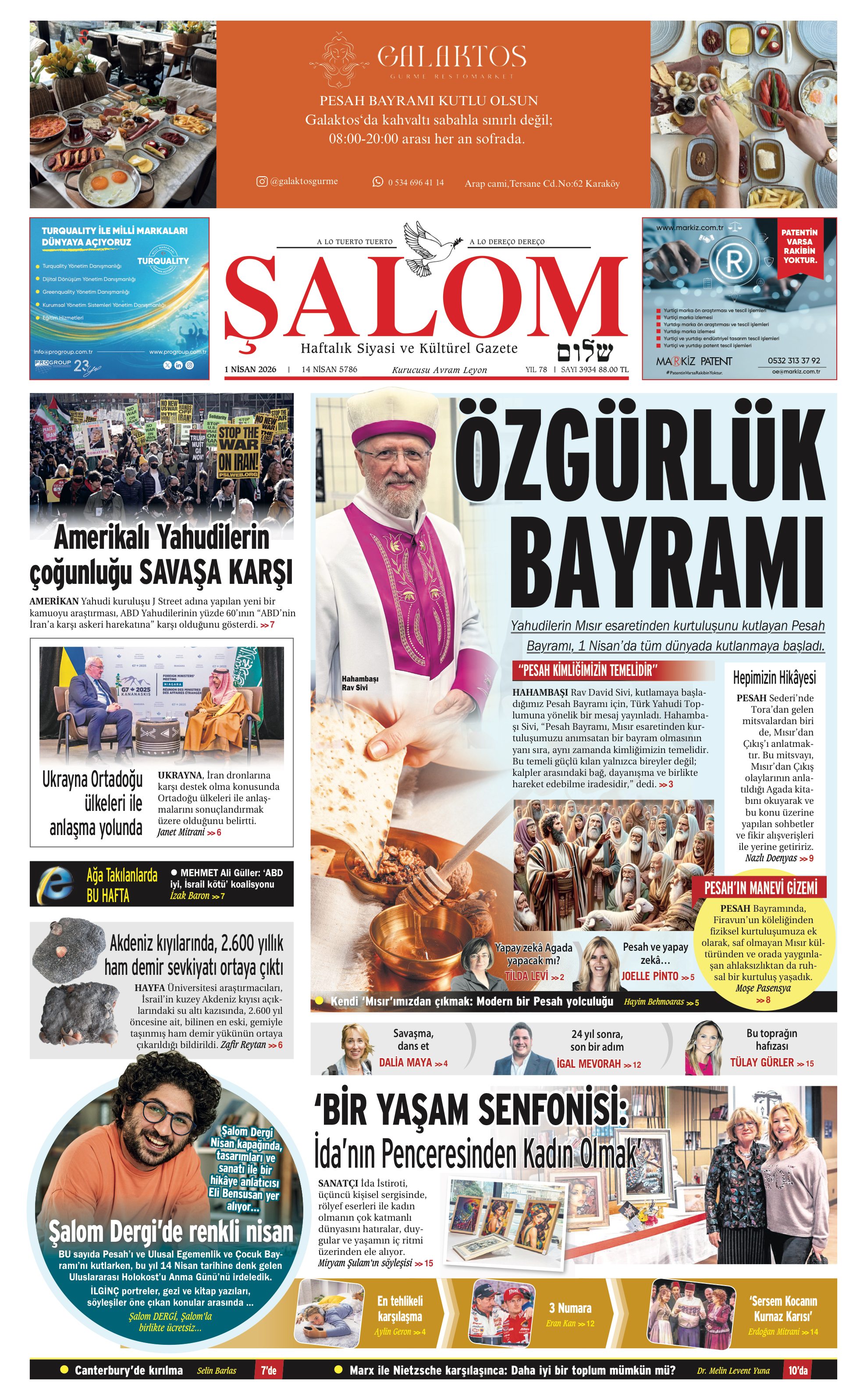 Şalom Editorial: "We Will Go on Calling for Peace"